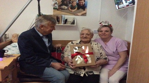 Dnes odpoledne jsme popřáli a společně oslavili s rodinou oslavenkyně paní Věry Dubnové její významné životní jubileum – 100 let.